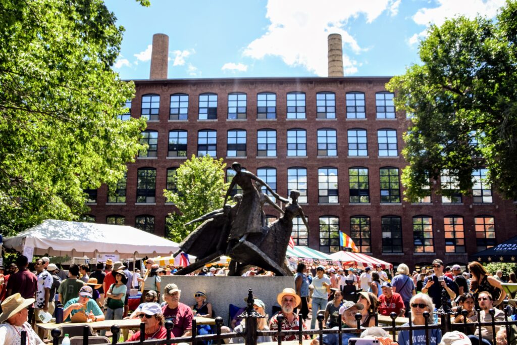 Homage to Women sculpture at Market Mills Park in Lowell during the Lowell Folk Festival. Photo courtesy of James Ostis.
